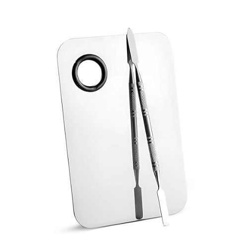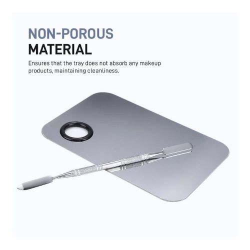 - [𝐇𝐈𝐆𝐇-𝐐𝐔𝐀𝐋𝐈𝐓𝐘 𝐒𝐓𝐀𝐈𝐍𝐋𝐄𝐒𝐒 𝐒𝐓𝐄𝐄𝐋] : Made from durable, rust-resistant stainless steel, this makeup mixing palette offers a smooth, non-porous surface that is easy to clean and maintain.